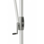 La hauteur de la manivelle d'ouverture/fermeture est de 125 cm, tandis que la hauteur de passage sous la toile est de 205 cm. La profondeur totale du parasol est égale à la taille de la toile plus 60 cm.