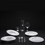 Chacune de ces 4 assiettes s'accorde avec une des 4 saisons : une grande assiette creuse pour l'hiver, une assiette creuse inclinée pour l'automne, une assiette creuse pour le printemps et une assiette plate pour l'été.