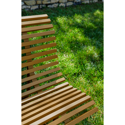 Avec ses lattes en acier, ce banc à la forme intemporelle trouvera sa place dans tous les aménagements extérieurs.
