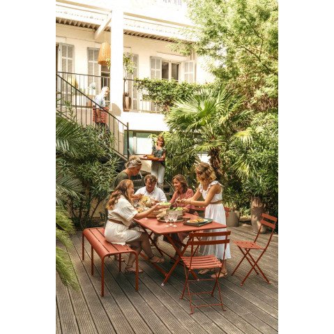 Banc Luxembourg Fermob à assise en lattes galbées.