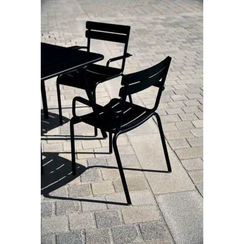 C’est en 2004 que Fermob demande à Fréderic Sofia de réinterpréter les mythiques chaises et fauteuils du Jardin du Luxembourg créé en 1923 par les ateliers de la ville de Paris et que Fermob fabrique encore aujourd’hui pour les jardins parisiens. Naissent ainsi une chaise et un bridge aux lignes évidentes, offrant la légèreté et la résistance de l’aluminium, le confort d’une assise en lattes galbées, la praticité d’une structure empilable.