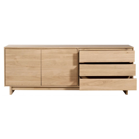Le buffet Wave en chêne vous permettra de ranger votre vaisselle, linge maison ou autres objets en apportant un esprit vintage à votre salon. Ce buffet est caractérisé par 2 portes et 3 tiroirs. Le buffet Wave est également disponib