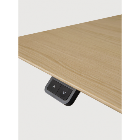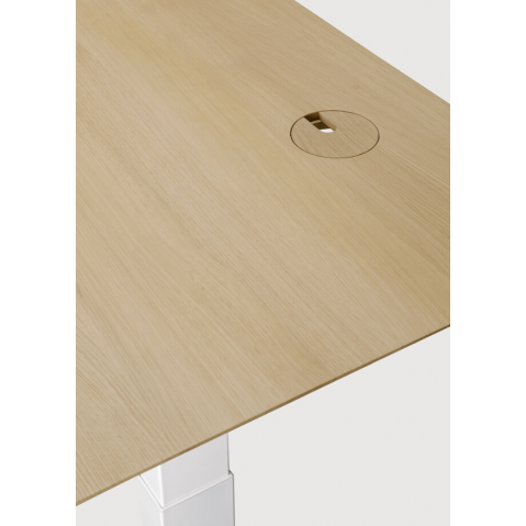 Bureau ajustable Bok - Plateau vernis d'Ethnicraft, Chêne verni, 140x70x64/130cm, Piétement blanc