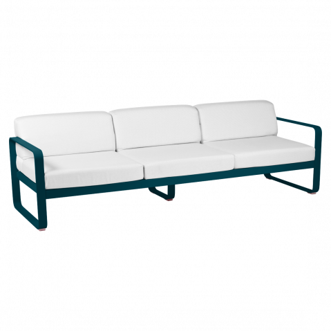 Canapé 3 places BELLEVIE de Fermob, Coussin Blanc grisé, bleu acapulco