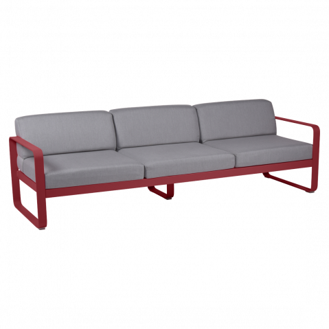 Canapé 3 places BELLEVIE de Fermob, Coussin Gris flanelle, Piment