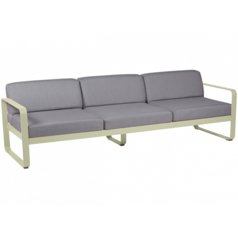 Canapé 3 places BELLEVIE de Fermob, Coussin Gris flanelle, Tilleul