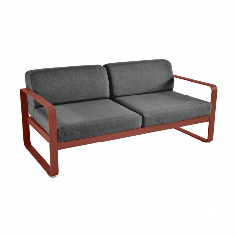 Canapé BELLEVIE de Fermob, coussin gris graphite, Ocre rouge