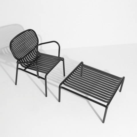 La collection WEEK-END est une gamme de mobilier outdoor complète. Pensée pour une utilisation pratique, les éléments sont empilables. La forme ovale et cernée dessine les dossiers pour qu'ils deviennent un signe graphique. Le travail des lattes horizontales et verticales comme des rayures, souligne les pleins et les vides, affirmant l'identité de la collection.