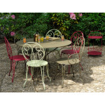 La structure des différents éléments de jardin de la collection Montmartre de Fermob est en fil d'acier. Conçue avec finesse et légèreté, la collection Montmartre de Fermob est pleine de fraîcheur. Les assises larges des chaises offrent un grand confort. les chaises et fauteuils sont empilable.