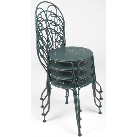 Monmartre est une chaise en acier tout en légèreté. Inspirée des jardins français d'autrefois, la rondeur des volutes de la chaise Montmartre rappel