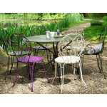 Monmartre est une chaise en acier tout en légèreté. Inspirée des jardins français d'autrefois, la rondeur des volutes de la chaise Montmartre rappel