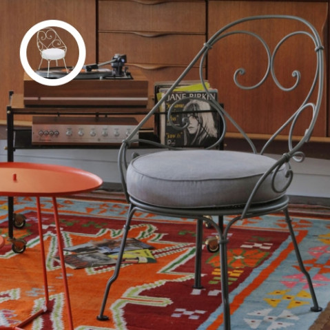 Fauteuil CABRIOLET de Fermob, Coussin Blanc grisé, Menthe glaciale