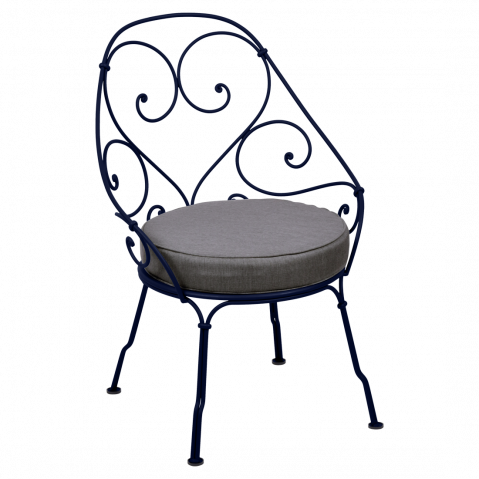 Fauteuil CABRIOLET de Fermob, coussin gris graphite, Bleu abysse