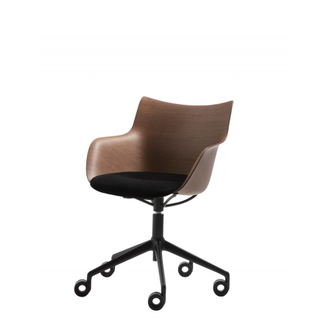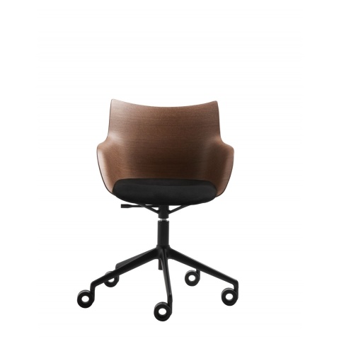 Le fauteuil Q/WOOD de la collection Smart Wood est composé d'une coque (basic veneer ou frêne lamellé),d'une assise en plastique (blanc ou noir) et d'un piètement en acier chromé ou peint en noir.