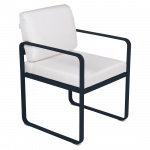 Fauteuil de repas BELLEVIE de Fermob, Bleu abysse, Coussin Blanc grisé