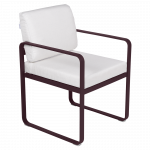 Fauteuil de repas BELLEVIE de Fermob, Cerise noire, Coussin Blanc grisé
