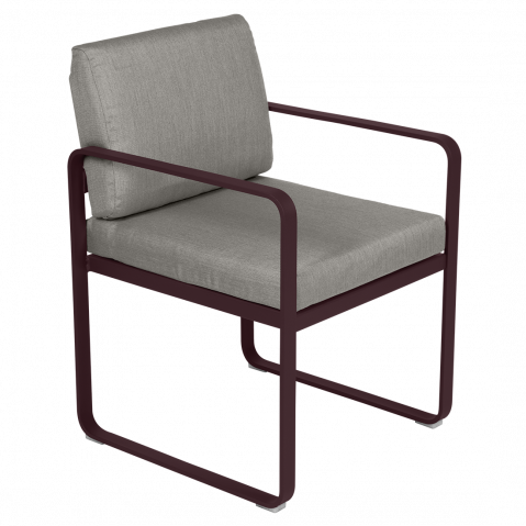 Fauteuil de repas BELLEVIE de Fermob, Cerise noire, Coussin Taupe grisé