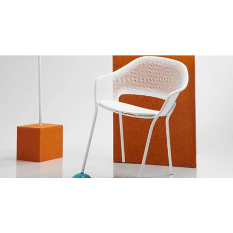 Fauteuil KATE Structure et dossier en acier Dossier coque perforé empilable X4