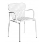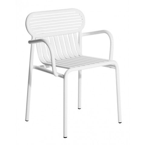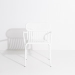 La collection WEEK-END est une gamme de mobilier outdoor complète. Pensée pour une utilisation pratique, les éléments sont empilables. La forme ovale et cernée dessine les dossiers pour qu'ils deviennent un signe graphique. Le travail des lattes horizontales et verticales comme des rayures, souligne les pleins et les vides, affirmant l'identité de la collection.