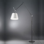 Lampadaire TOLOMEO MEGA de Artemide, Corps noir, Diffuseur satin gris Ø 36 cm dimmable