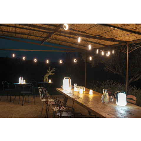 La lampe Balad H25 de fermob est une baladeuse d’extérieur rechargeable avec un cordon USB.