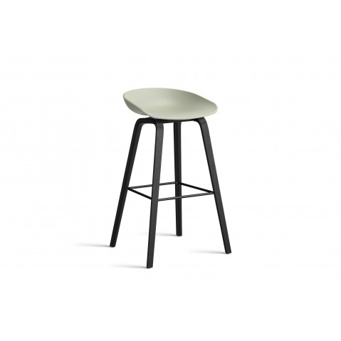 Tabouret AAS32 HIGH de Hay H.74, Pieds en chêne noir, Repose-pieds noir, Pastel green 2.0