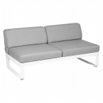 Module central BELLEVIE de Fermob, 2 places, Blanc coton, Coussin Gris flanelle
