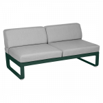 Module central BELLEVIE de Fermob, 2 places, Vert cèdre, Coussin Gris flanelle