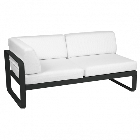 Module d'angle gauche 2 places BELLEVIE de Fermob, Réglisse, Coussin Blanc grisé