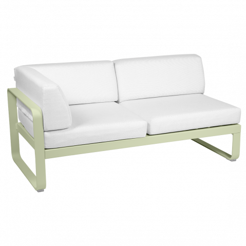 Module d'angle gauche 2 places BELLEVIE de Fermob, Tilleul, Coussin Blanc grisé