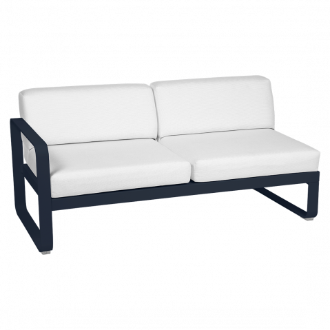 Module gauche BELLEVIE de Fermob, 2 places, Bleu abysse, Coussin Blanc grisé