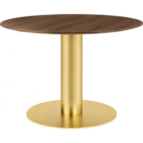 Table 2.0 de Gubi, base laiton, Ø110 cm, American Walnut Semi Matt Lacquered
