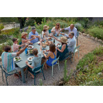 Avec ou sans allonge (2 ou 3) suivant le modèle, la table métallique Ribambelle peut accueillir de 6 à 14 convives sans aucun encombrement des pieds. En passant de 149 cm à 299 cm de long cette table de jardin très stable est résistante aux conditions extérieures.