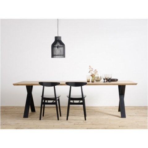 La table ALBERT X de Vincent Sheppard est une grande table conviviale avec un plateau en chêne massif et un piétement en acier laqué poudré noir.