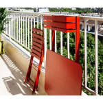 La table Balcon est la petite dernière de la fameuse gamme Bistro ! Pratique et utile, cette table pliable peut accueillir 2 personnes en toute intimité et sait se faire discrète grâce à son plateau rabattable. Elle s’adapte à la hauteur des balcons tout en assurant fixité et confort grâce à un astucieux système de vérins. Conçue pour convenir à tous, elle peut aussi être fixée au mur. Idéale pour les petits espaces urbains, elle est en 24 couleurs de nuancier possible et dispose d’un bac de rangement offrant la possibilité de paysager le balcon de quelques notes colorées.