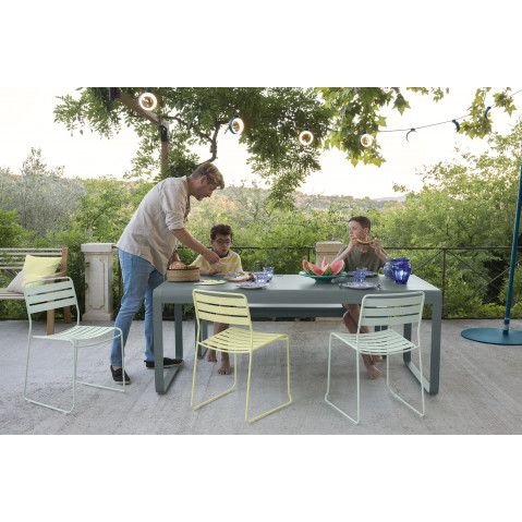 La table Bellevie de Fermob se distingue par ses belles courbes. Pour un repas entre amis, des jeux en famille, un bu