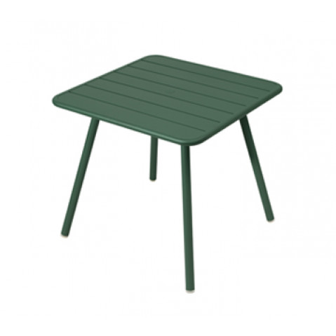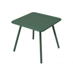 Table carrée 4 pieds Luxembourg de Fermob avec plateau démontable en aluminium et trou parasol.