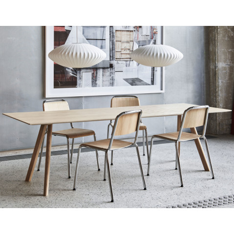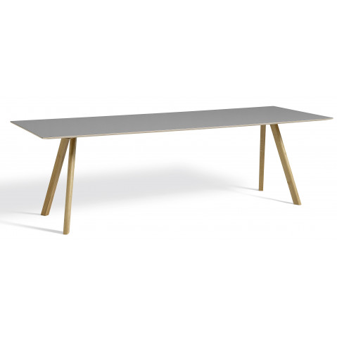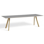 Table COPENHAGUE CPH30 250 X 90 CM de Hay, Plateau linoléum gris, Pieds en chêne vernis naturel