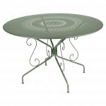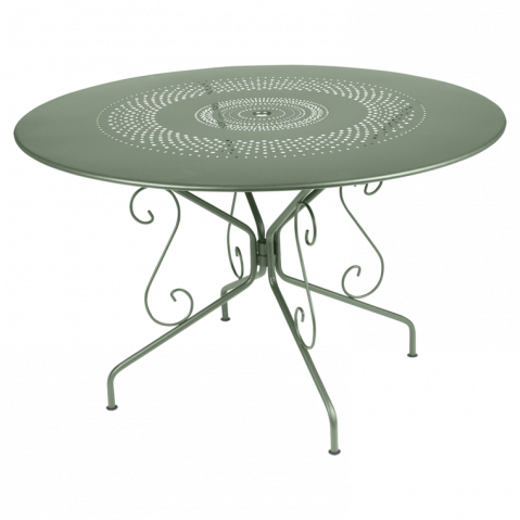 Table ronde de la collection "Montmartre" Avec son plateau aux subtiles perforations et ses volutes pleines de fraicheur, cette table inspire poésie et séduction… pour des moments de détente et de convivialité au jardin. Structure fil acier. Tous les coloris du nuancier Fermob métal. Assise et plateau tôle acier perforée électro-zinguée. Traitement Haute Protection pour usage extérieur. Peinture poudre anti-UV.