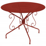 Table ronde de la collection "Montmartre" Avec son plateau aux subtiles perforations et ses volutes pleines de fraicheur, cette table inspire poésie et séduction… pour des moments de détente et de convivialité au jardin. Structure fil acier. Tous les coloris du nuancier Fermob métal. Assise et plateau tôle acier perforée électro-zinguée. Traitement Haute Protection pour usage extérieur. Peinture poudre anti-UV.