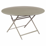 Chacun devrait posséder une table ronde ! C’est la garanti de dîners conviviaux, de parties de cartes passionnant, de longues discussions animées… Ce format crée proximité (et intimité) car on voit bien chacun des invités ! Elle peut avoir 7 personnes à ses côtés, faire un diamètre de 128 cm, elle peut être mis à l'extérieur ou l'intérieur. Tous les styles de chaises, fixes ou pliantes en métal ou en toile (chaises Bistro ou La Môme par exemple) s'accessoirise bien avec ! Il existe beaucoup de déclinaisons couleur dans le nuancier FERMOB