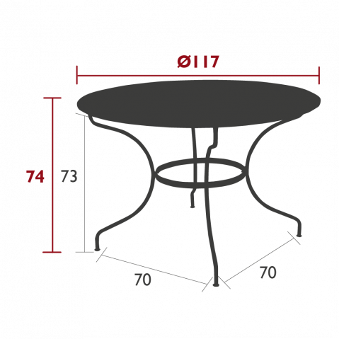La table ronde Ø67 OPERA+ est conçue pour répondre aux exigences de la vie en extérieur. Elle possède une ceinture en acier plat et un plateau démontable, ainsi qu'un trou central pour un emplacement parasol (Ø39 mm). Fabriquée en France dans les ateliers historiques de Fermob, cette table est d'une grande qualité grâce à l'expertise reconnue de la marque en matière de travail du métal.