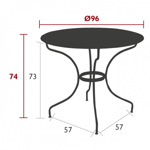 La table ronde Ø67 OPERA+ est conçue pour répondre aux exigences de la vie en extérieur. Elle possède une ceinture en acier plat et un plateau démontable, ainsi qu'un trou central pour un emplacement parasol (Ø39 mm). Fabriquée en France dans les ateliers historiques de Fermob, cette table est d'une grande qualité grâce à l'expertise reconnue de la marque en matière de travail du métal.