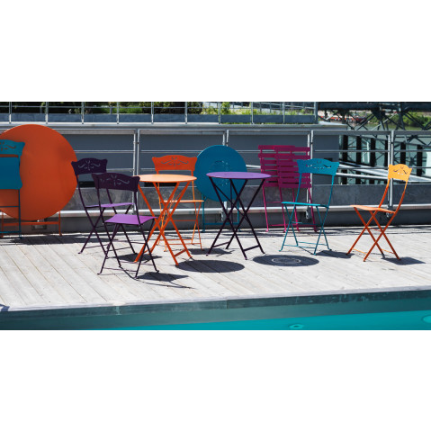 La table ronde Bistro de Fermob se décline en 4 dimensions ( Diam: 60 - 77 - 96 et 117 cm) et 22 couleurs: De quoi faire son choix! Tous les modèles sont pliant pour un rangement ultra pratique.