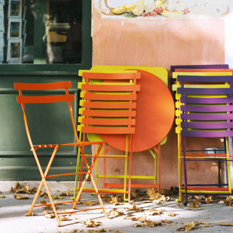 La table ronde Bistro de Fermob se décline en 4 dimensions ( Diam: 60 - 77 - 96 et 117 cm) et 22 couleurs: De quoi faire son choix! Tous les modèles sont pliant pour un rangement ultra pratique.