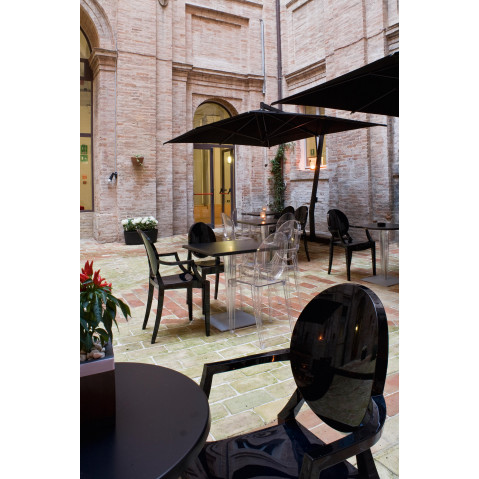 Le piétement en PMMA vide et transparent donne de la profondeur à la structure.